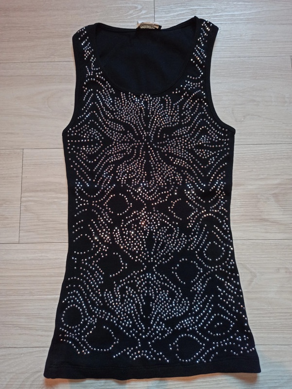 Tílko / top vhodný do společnosti. Velikost není uvedena. Pružný materiál, který se přizpůsobí velikosti S a také M Značka Kikiriki
