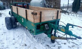 Rozmetadlo pro traktor, malotraktor.. Celková hmotnost 3 t. Funkční mechanická brzda, elektroinstalace, náhonový hřídel s pojistnou spojkou. Málo používané, ve velmi slušném stavu