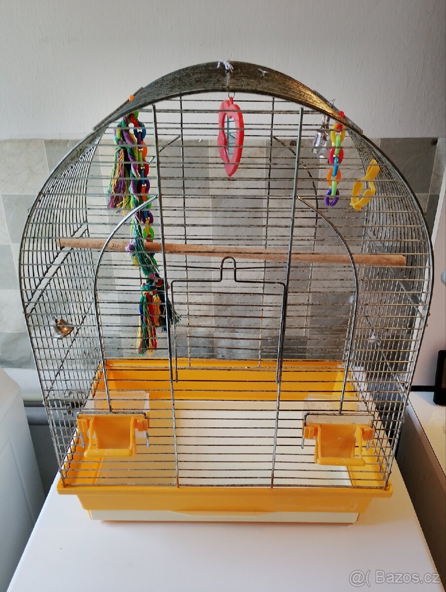 Nabízím starší klec pro drobné ptactvo. Včetně doplňků.