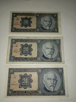 Nabízím bankovky 20 Kčs z roku 1926, serie Bf, Sf, Eh všechny jsou NEPERFOROVANÉ, v pěkném oběhovém stavu. Hodnotím jako 2-3. Bankovky jsou vyfoceny v aktuálním stavu, přesně tyto obdržíte. Cena: Série Eh, Bf za kus 222,- Kč Série Se za 444,- Kč za kus, lepší stav. V případě koupě všech 3 bankovek je cena po slevě 777,- Kč. Možnost osobního převzetí v Brně, jinak zasílám do 2 dní po připsání platby na účet řádně zabalené přes zásilkovnu, balikovnu. Podívejte se prosím i na mé další nabídky přebytků ze sbírky bankovek. V případě Vašeho konkretního požadavku na jakoukoliv bankovku ČSSR od roku 1919 mě neváhejte kontaktovat. Spolupracuji s více sběrateli. Jsem i na WhatsAppu