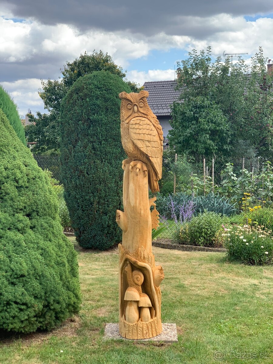 Dřevěná socha,sova na pahýlu,(dub), 198cm ,bez povrchové úpravy (případně mohu dokončit)