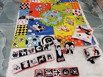 velká sada barevné hrací deky 80cm,krásná pestrobarevná se zvířátky, do setu kontrastní mini leporelka 34cm,zvířátko chrastítko do ručičky kočička,lištička, kostka s auty,hmatový polštářek letadlo,vše ihned k odeslání,cena za vše 1499,-