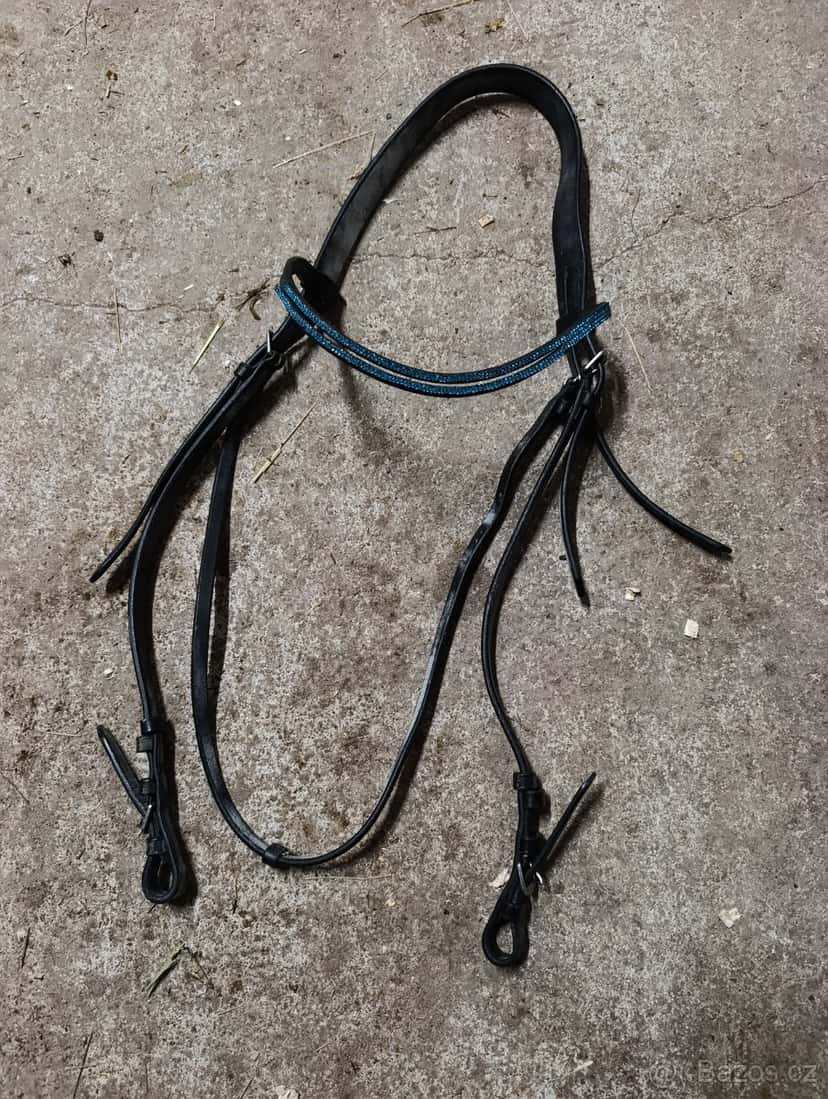 Černá uzdečka velikosti xfull - nová bez nanosníku. Čelenka je starší z jiné uzdečky (chybí některé kamínky)