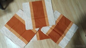 Nové přehozy na gauč, pohovku, sedací soupravu a křesla. 4 povlaky na polštářky. Materiál 100 bavlna, přírodní barvy béžové, oranžové a rezavé. Retro styl 2x přehoz o rozměrech 40x 200 cm na křesla 4x přehoz o rozměrech 50x 200cm na gauč nebo na křesla 4 x povlak na polštářek 40x 40 cm se zipem Nové, originál zabalené, cena za vše Značka: Quelle Poštovné: 80 zásilkovna, balikovna