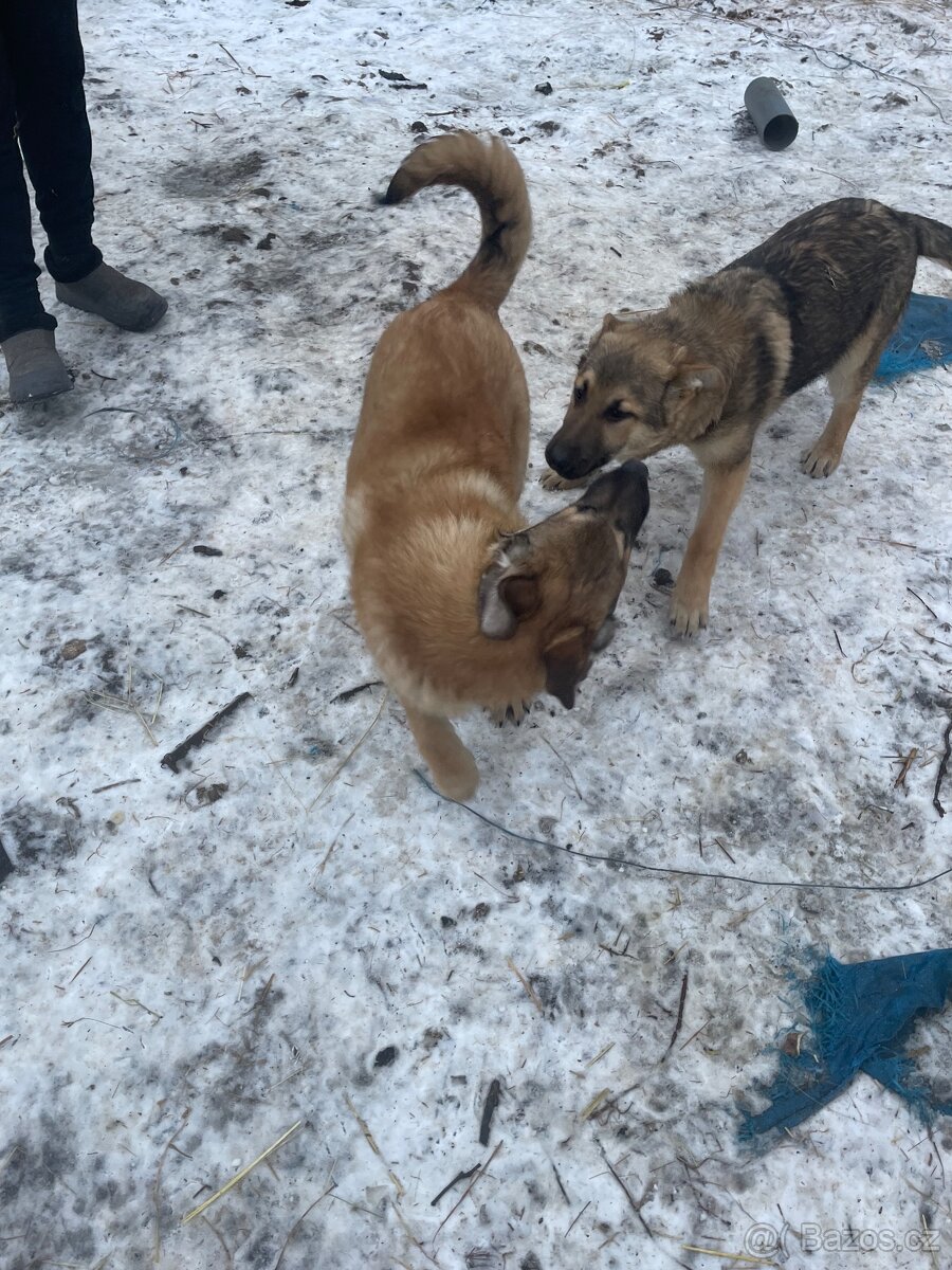 Cena: Nabídněte. Nabízím štěňátka křížence, matka je kříženec vlčáka a malamuta, otec retrívr, 2 pejska, kluci. Stenata jsou odčervena a očkována, mají čip a očkovací průkaz. Odběr je možný jhned. Inzerát je platný do vymazání.