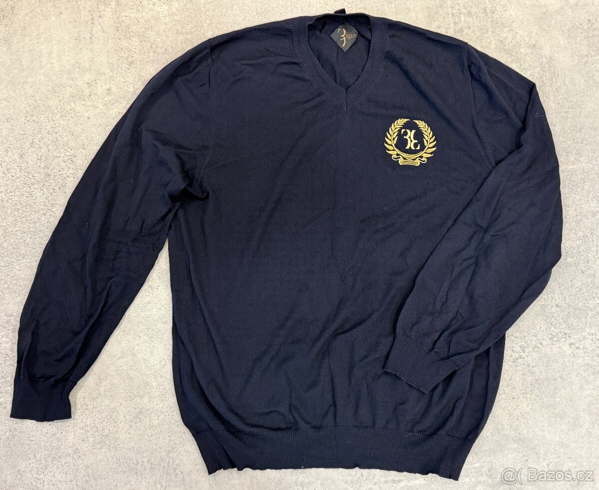 • Pohlaví: pánské • Velikost: XXXL (italská móda, trochu menší) • Styl: luxury casual / old money / business casual • Střih: klasický rovný střih, pohodlný, větší velikost • Výstřih: kulatý (crew neck) • Barva: tmavě modrá (navy) • Detaily: zlatá výšivka erbu s monogramem na hrudi, žebrované lemy • Materiál: 100% virgin wool (panenská vlna) Stav: bez vad. Pouze na jednom místě je utržená zadní látková cedulka, samotný svetr je bez jakéhokoli poškození. Značka: Billionaire Luxusní italská značka Původní maloobchodní cena: cca 18 000 Kč