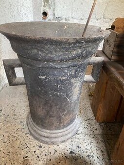 Prodám starožitný (odhad 17.-19. století) litinový hmoždíř bez tlouku. Výška 55,5 cm, průměr horní části cca 43 cm. Je velmi těžký. Pouze osobní odběr Posázaví. P.S. Najde se šikovný sběratel, který si ho s radostí a odborností opraví do krásného stavu?