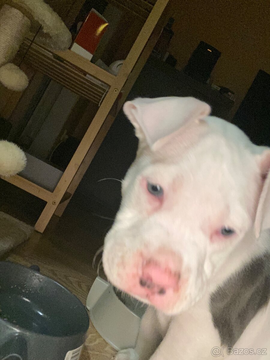 Prodám štěňátko Staford měsíční je hodně hravý zvyklí na kočku je hodný..prodávám ho z důvodu stěhování na těch fotkách je trosku rozmazaný zrovna jsi hrál z kočkou 😁