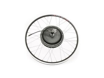 Přední pohon EVBIKE zapletený v 26" dvoustěnném duralovém ráfku (205B-27-7x9). Výkon motoru 500W při 36V napětí baterie nebo 750W při 48V napětí baterie. BLDC (bezkartáčový stejnosměrný). Motor vyniká vysokým krouticím momentem.
