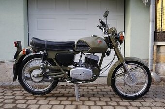 Prodam CZ 175/487 r.v. 1986. Motocykl je v plne funkcnim puvodnim stavu. V roce 1992 byl odkoupen ze zasob armady a pote uskladnen. Opet byl oziven v roce 2023 - vylita nadrz, vycisten karburator, oleje, filtry, nova spojka, baterie, tachometr, spinaci skrinka a rotor dynama z ulozenkovych dilu. Od te doby najezdeno cca 600km. Najezd na puvodnim tachometru byl 9522 km. Levy kastlik je nepuvodni (puvodni pridam) a pravy je puvodni ale pretren cernou barvou. Vice fotek najdete na: https://www.rajce.idnes.cz/palmoliveformen/album/cz-175-487 STK do 1/2027