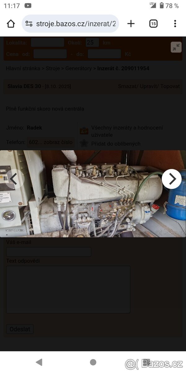 Prodám elektrocentrálu motor 4valec nafta 30kw výkon najeto 48mth