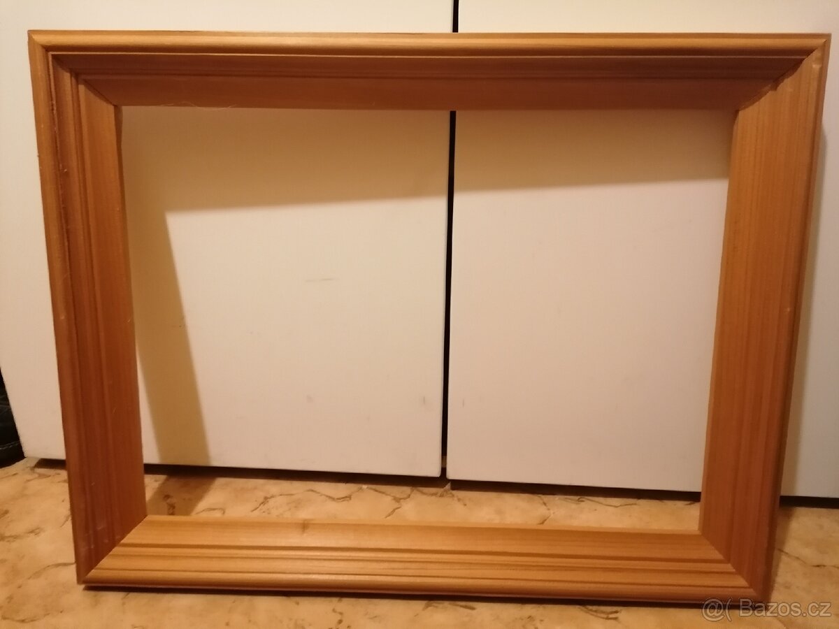 Cena: V textu. Dva velké dřevěné rámy obrazů. Rozměr : První rám - vnější 70 x 44,5 cm, vnitřní 59 x 33 cm, hloubka rámu 4,7 cm. Druhý rám - vnější 63,2 x 49 cm, vnitřní 52.5 x 38 cm, hloubka rámu 4,7 cm. Cena : 250 Kč kus, při koupi obou rámů - cena 400 Kč za oba.