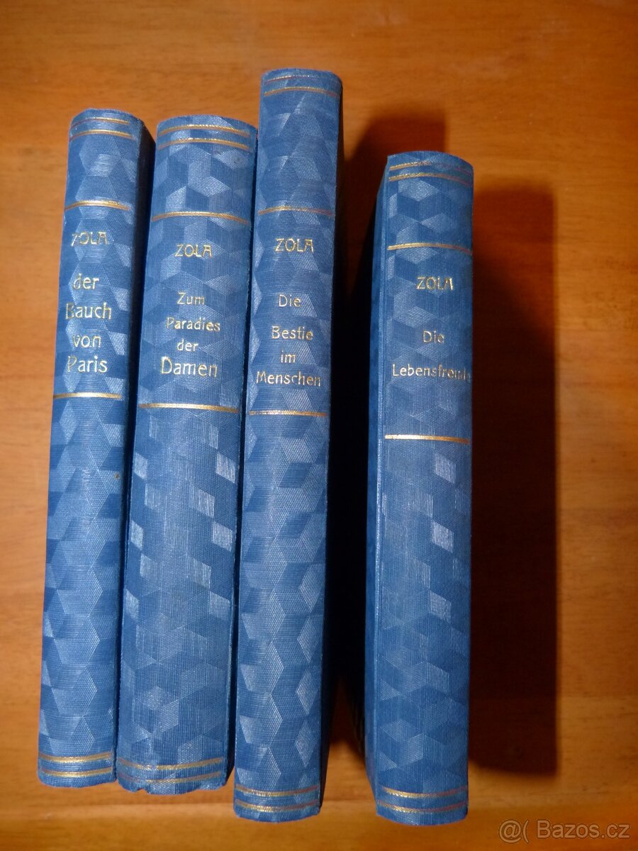 Cena: Nabídněte. Nabízím Zolovy romány, velmi staré vydání, tištěné ještě švabachem. Počátek 20.stol. Všechny jsou ve výborném stavu. 1) Zum Paradis der Damen (Do ráje dam) 2) Die Bestie im Menschen (Lidská bestie) 3) Der Bauch von Paris (Břicho Paříže) 4) Die Lebensfreude (Chuť do života)