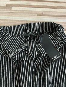 NOVÉ ČERNÉ KALHOTY S BÍLÝM PROUŽKEM V PASE NA GUMU A ZAVÁZÁNÍ VEL S Pas v klidu cca 2 x 29 cm Délka cca 95 cm.