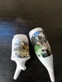 Cena: Nabídněte. Porcelánové fajfky-hlavičky s mysliveckými motivy.