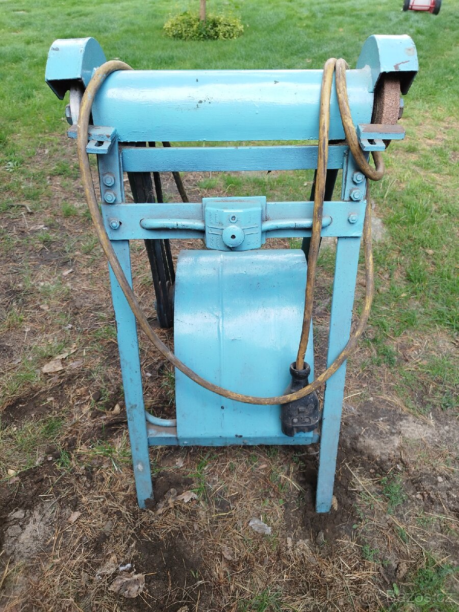Prodám dvoukotoučovou brusku se stojanem. Bruska na starou keramickou zásuvku - lze předělat na novou.