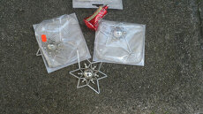 VÁNOČNÍ OZDOBY-1x zvonek,5x hvězda-starodávné v původním obalu.