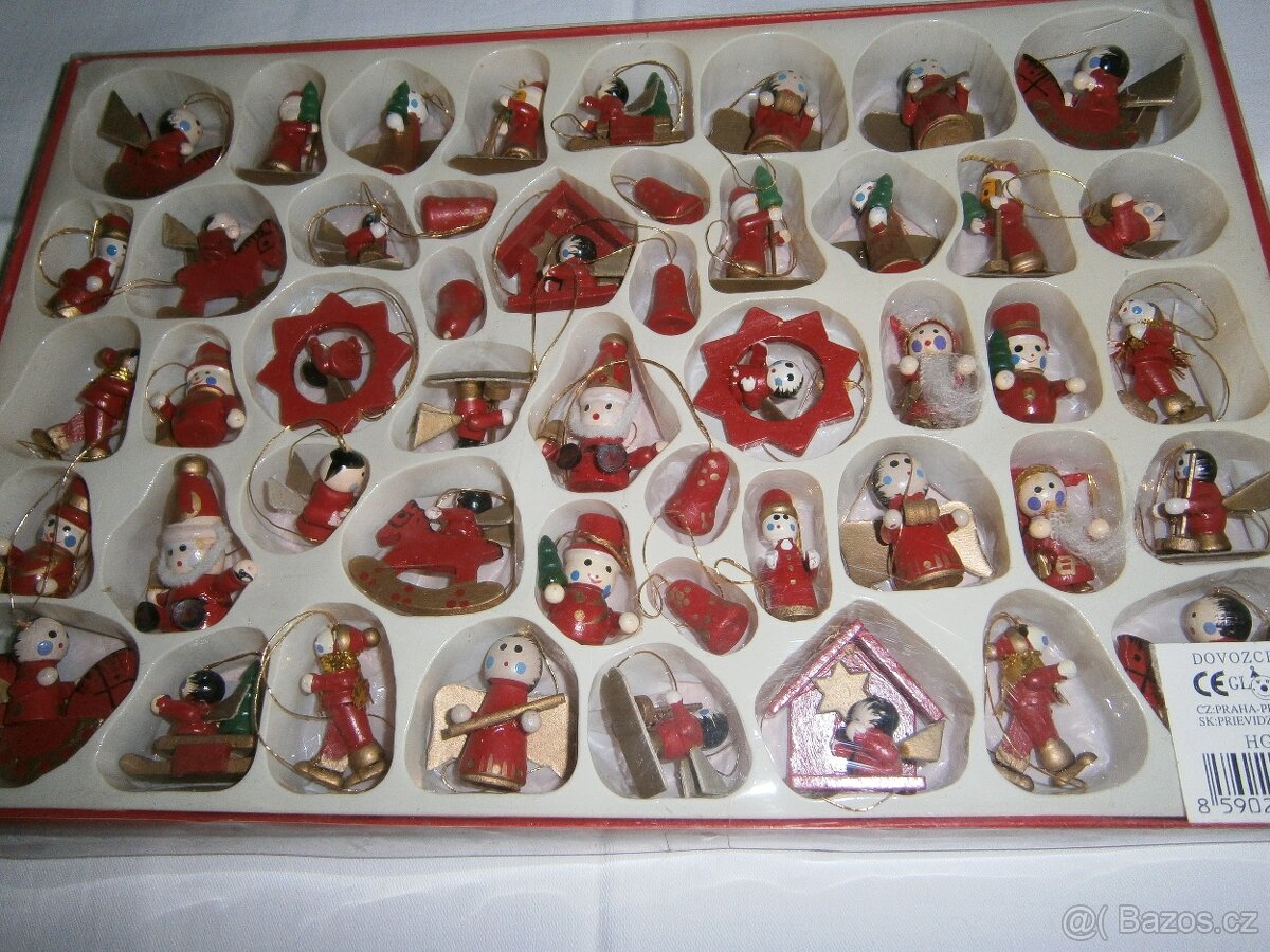 Nabízím nepoužité miniaturní dřevěné vánoční ozdobičky 48 ks.