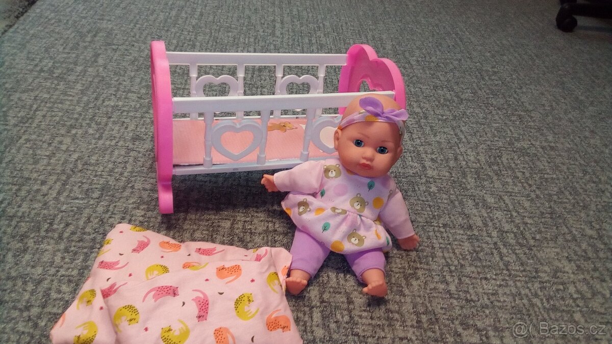 Panenka cca 30 cm, měkké tělo + kolébka- cca 33 cm. Hrané, čisté,funkční,Ok, nějaká pidi kosmetická nedokonalost už se najít může. Cena komplet.