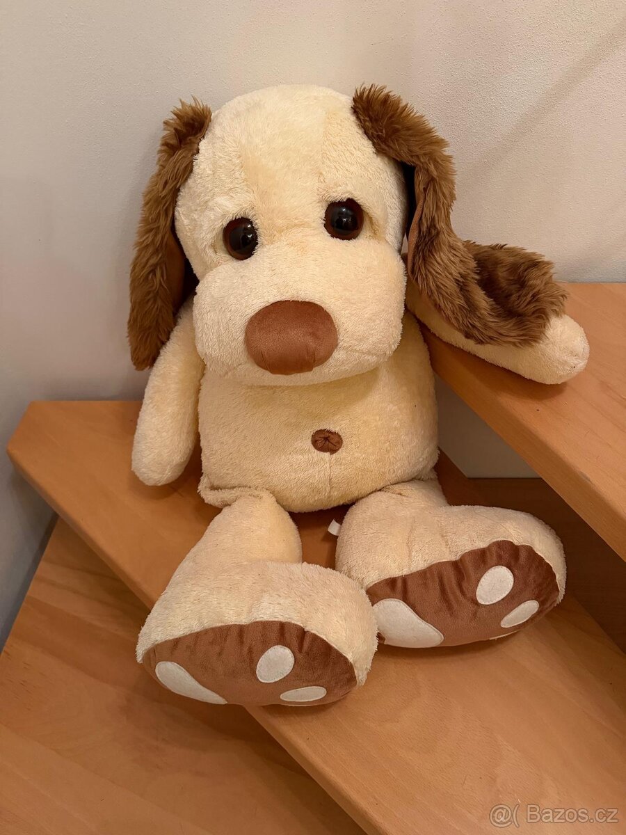 Prodám krásného plyšového psa. Barva béžová v kombinaci s hnědou. Vyrobeno v České republice (viz foto).