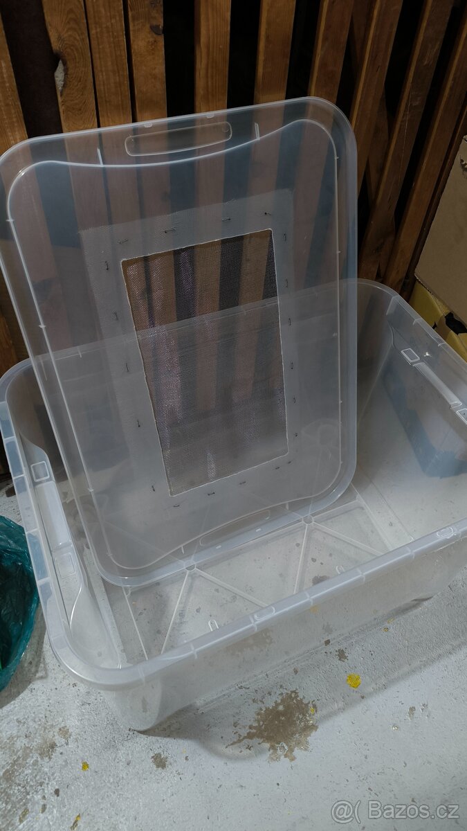 rozměry d78xš57xv44, krátce jsme v něm měli syrského křečka, box je na kolečkách, jedno je ulomené, ve víku síťka pro větrání, pouze osobní předání v Plzni nebo Vejprnicích