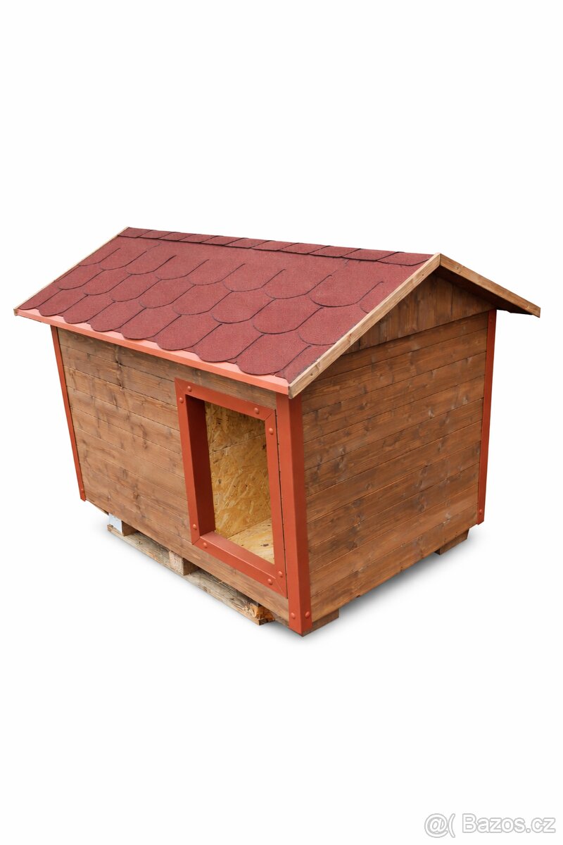 Prodám zateplenou boudu pro velkého psa. - Sundavací střecha - 3x nátěr - Možnost dopravy po dohodě. Venkovní rozměry: š.100cm X d.140cm X v.115 Vnitřní rozměry: Ložnice : š.90cm X d.80cm X v.80cm Chodba: š.45cm X d.90cm X v.80cm Bouda je komplet zateplená 4cm polystyrenem včetně podlahy a stropu. Skladba zdí: palubka > konstrukce lať 6x4cm(polystyren) > osb desky . Střecha : asfaltový šindel