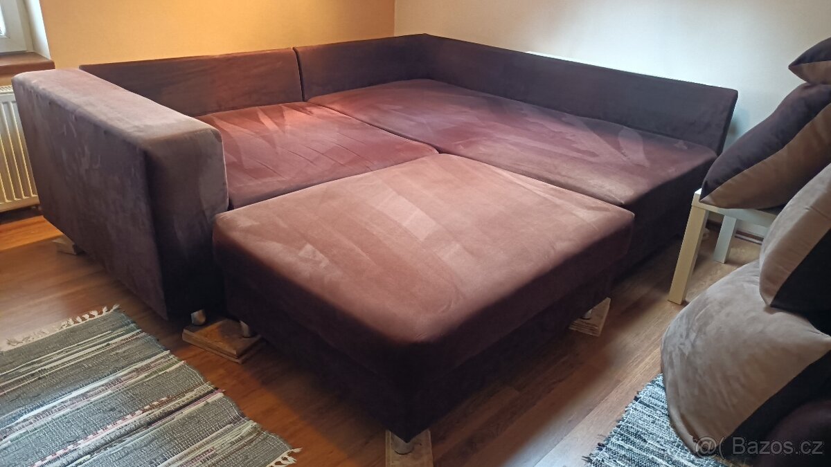 Sedací souprava velmi zachovalá s taburetem a 7 polštáři 230x200cm
