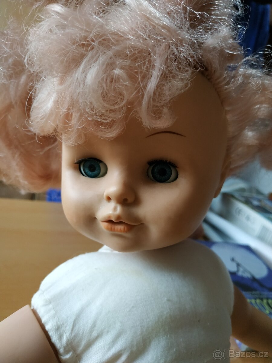 Prodám starší retro panenku z období 70.–80. let, československé výroby. Panenka má plastové ruce, nohy a hlavu, textilní trup s výplní a původní syntetické vlasy v růžovo-blond odstínu. Oči jsou pohyblivé (zavírají se při položení). Parametry: ✔️ Výška: 43 cm ✔️ Materiál: plast + textilní trup ✔️ Vlasy: růžovo-blond, vlnité, ✔️ Stav: použitá, zachovalá, mírná trhlina ve švu mezi nohama, jinak bez prasklin, vlasy mírně zacuchané ✔️ Oblečení: jednoduché - není původní 📞 Osobní předání je možné na Praze 9, po domluvě mohu zaslat Zásilkovnou nebo PPL. 📩 V případě zájmu mě kontaktujte zprávou.