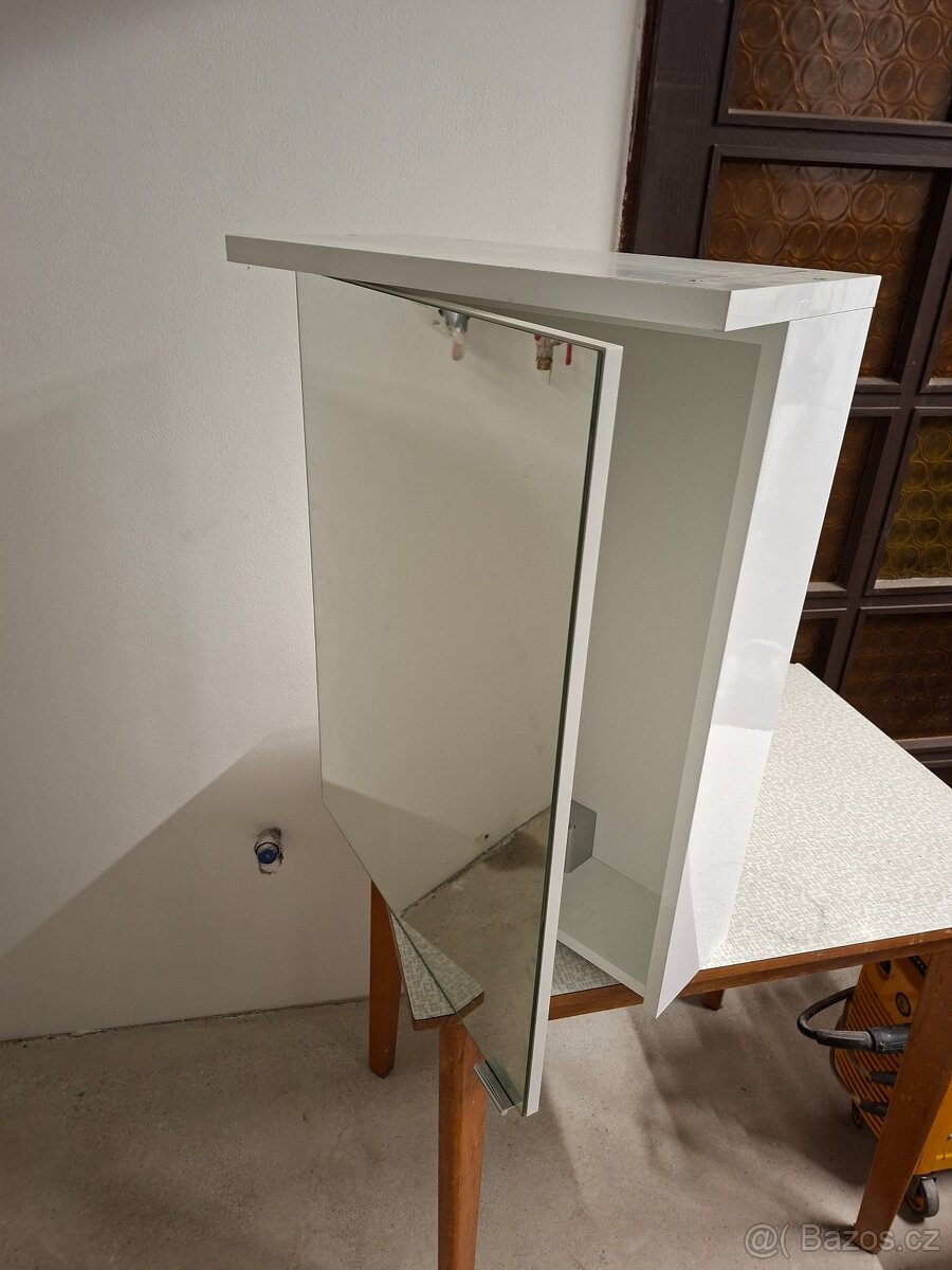 Prodám skříňku do koupelny se zrcadlem a světlem, málo používanou, téměř nová. Uvnitř skleněné poličky a zásuvka na 220V.