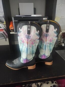 Prodám nové pouze vyzkoušené krásné westernové boty . Nevhodný dárek . Jsou mi velký . Odhaduji velikost 42-43