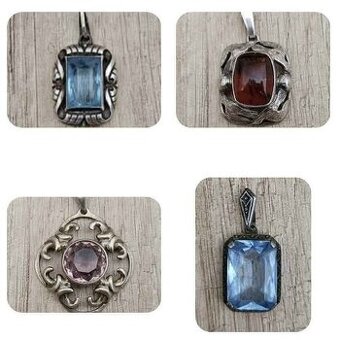 Cena: Dohodou. Velmi zachovalé stříbrné přívěšky art Deco. Cena dohodou