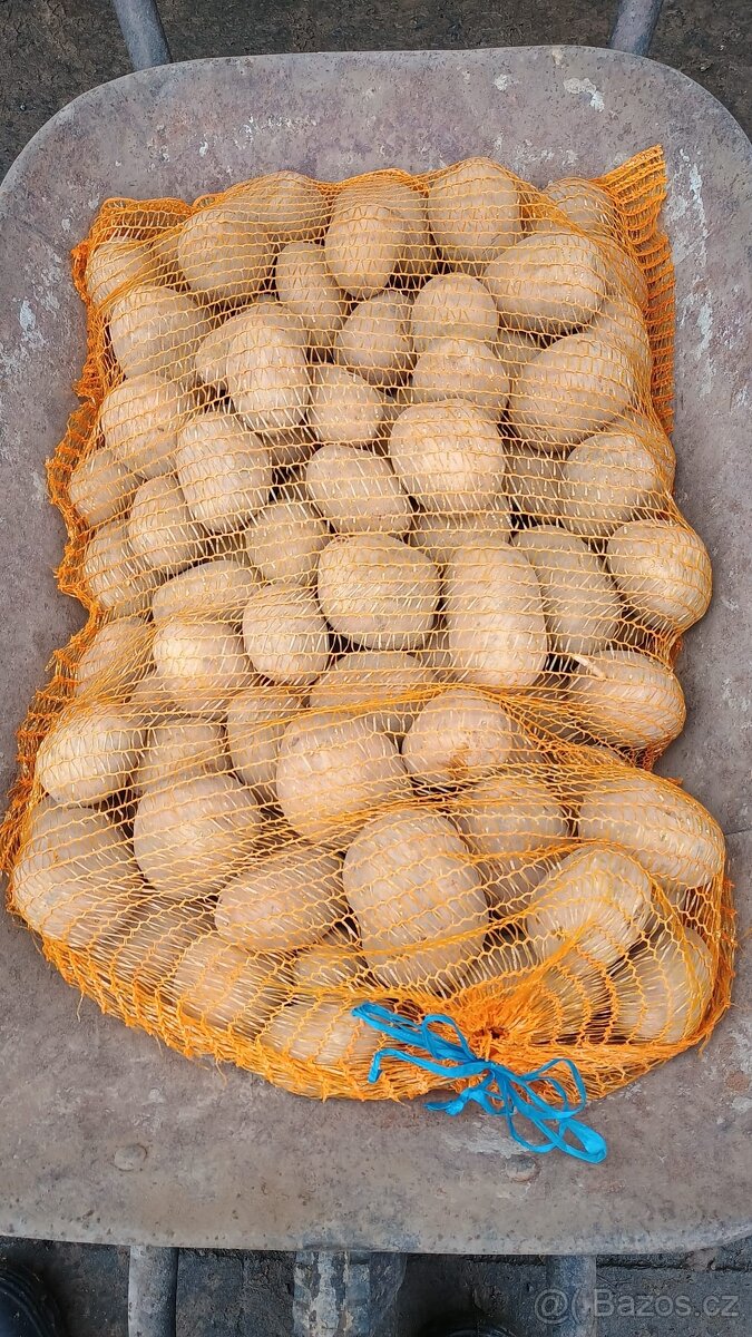 Cena: V textu. Prodám kvalitní krmné brambory (foto aktuální) vhodné i na konzum, odrůda Soraya. Ručně přebírané. Baleno v pytlích po 25 kg, 4 Kč/kg