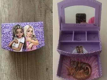 Nádherná dívčí šperkovnice značky Top Model vyrobená z pevného kartonu se zrcátkem. Šperkovnice nabízí dostatečný vnitřní prostor pro přehledné uložení všech šperků! Horní patro je rozděleno několika přihrádkami pro uložení menších šperků a prstýnků. Spodní dvě vnitřní přihrádky jsou ideální na větší šperky. Oblíbený design nadchne všechny holčičky! Rozměry: 15,5 x 11 x 8 cm Hmotnost: 281 g