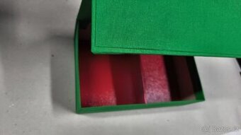 Krabička pro filatelisty na pohlednice, přenosná na burzy nebo vlastní uložení z pevného kartonu potažená plátnem na magnet. Rozměr 27x18x8 cm
