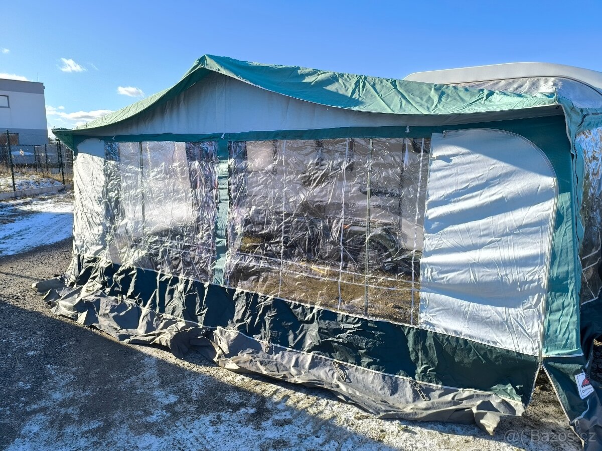 Předstan ke karavanuProdám karavanový stan Isabella Dorema, celoroční použití. Délka: 950 cm. Dobrý stav. Použitý jednou.