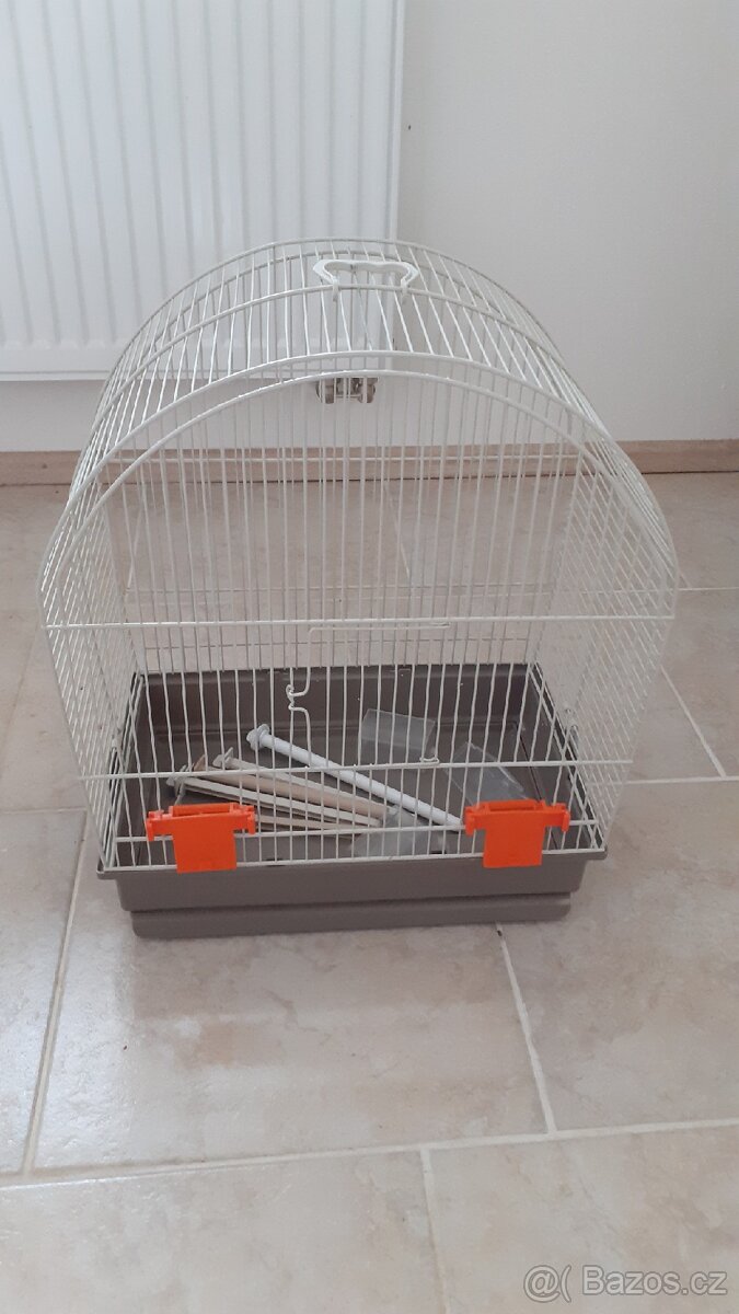 Klec pro andulku nebo andulky,pouzivana,ale je ve velmi dobrem stavu,barva na dratech drzi,bez rzi +pridavam 2x krmitka a 5x bidylka. Rozmery vyska 48cm, sirka 40cm, hloubka 25cm