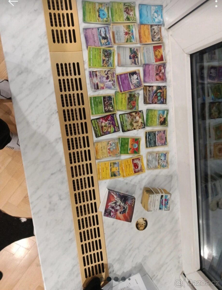 Prodávám 24 třpytivých Pokémon kartě viz. obrázek okolo 150 normálních karet žeton a k tomu ještě mini album do kterého se vejde 60 karet. Karty můžu prodávat jednotlivě nebo víc jih naráz s velkou slevou za vše dohromady chci 800kc. Také prodávám mystery balíčky za 50kc mají v sobě 10 karet každá a aspoň jednu třpytivou kartu. Jen za třpytivý karty mi ověřený scanner řekl že dohromady stojí 1250kc (50dollaru).