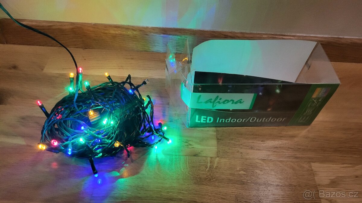 Prodám LED barevná světýlka. Délka řetězu 5,85 cm (40 žároviček). Vnitřní i venkovní. Plně funkční.