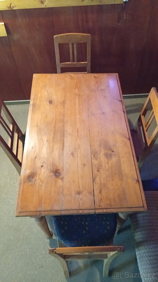STAROŽITNÝ STUL 1920 + 4 ŽIDLE.CENA PEVNÁ.POUZE KOMPLET