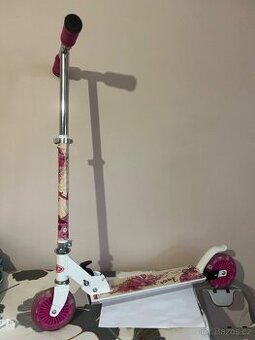 Worker Pinki je kvalitní dětská koloběžka v krásném růžovém designu, která splňuje vysoké nároky na bezpečnost dětí. Má svítící kolečka a je vyrobena z odlehčené slitiny oceli a hliníku. Díky jednoduchému sklápěcímu mechanismu se zajištěním ji snadno složíte a se svou nízkou hmotností 2 kg je zároveň lehce přenosná. Ochranné prvky, jako jsou pěnové rukojeti na řídítkách, protiskluzová nášlapná deska nebo zadní brzda, zaručují perfektní jízdní vlastnosti a bezpečnost. Koloběžka má nastavitelnou výšku řídítek od 59 do 78 cm. Worker Pinki má nosnost do 50 kg a je vhodná pro děti od 4 let. Nosnost 50 kg Velikost koleček 120 mm Skládací ano Dětské ano Freestyle ne Terénní ne Nafukovací kolečka ne Hmotnost 2 kg DMC 899 Kč s DPH 2ks 300Kč za obě
