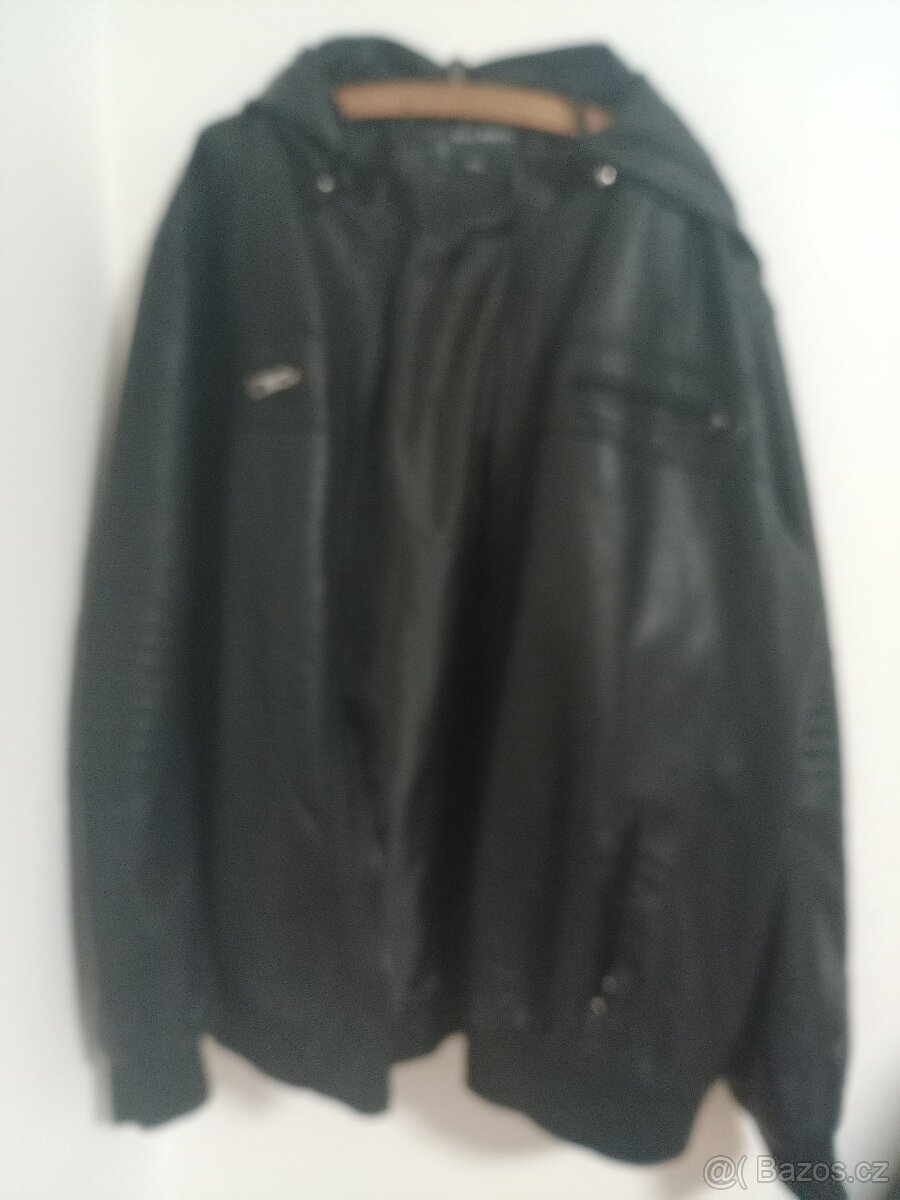 Pánská bunda koženková,černá,kapuce, #Nová!