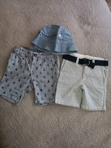 Kraťasy s loďkami vel. 92 cm, 18-24 měs. Klobouček 92/104 cm. Vše zn.HM. Pozn.kratasy s páskem prodány zvlášť.