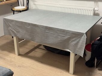Prodám použitý stůl se známkami používání, viz foto. Ohledně koupě mi pište na WhatsApp nebo na e-mail. Samotná deska stolu (pod ubrusem/folií) má také oděrky a poškození, ale nijak to neovlivňuje funkčnost. Stačí přikrýt ubrusem a bude vypadat skvěle.