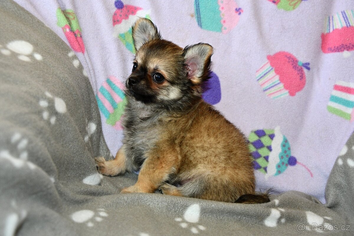 Cena: Dohodou. Nabízím čivavu dlouhosrstou s PP FCI. Kluk. Je očkovaný, čipovaný. Vyrůsta v rodinném prostředí. Je učený na podložku. Telefon 602383806