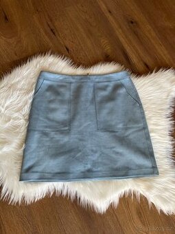 Hezká krátká sukně modré barvy, příjemný materiál, kapsy, vzadu zip Zn.Orsay vel.40