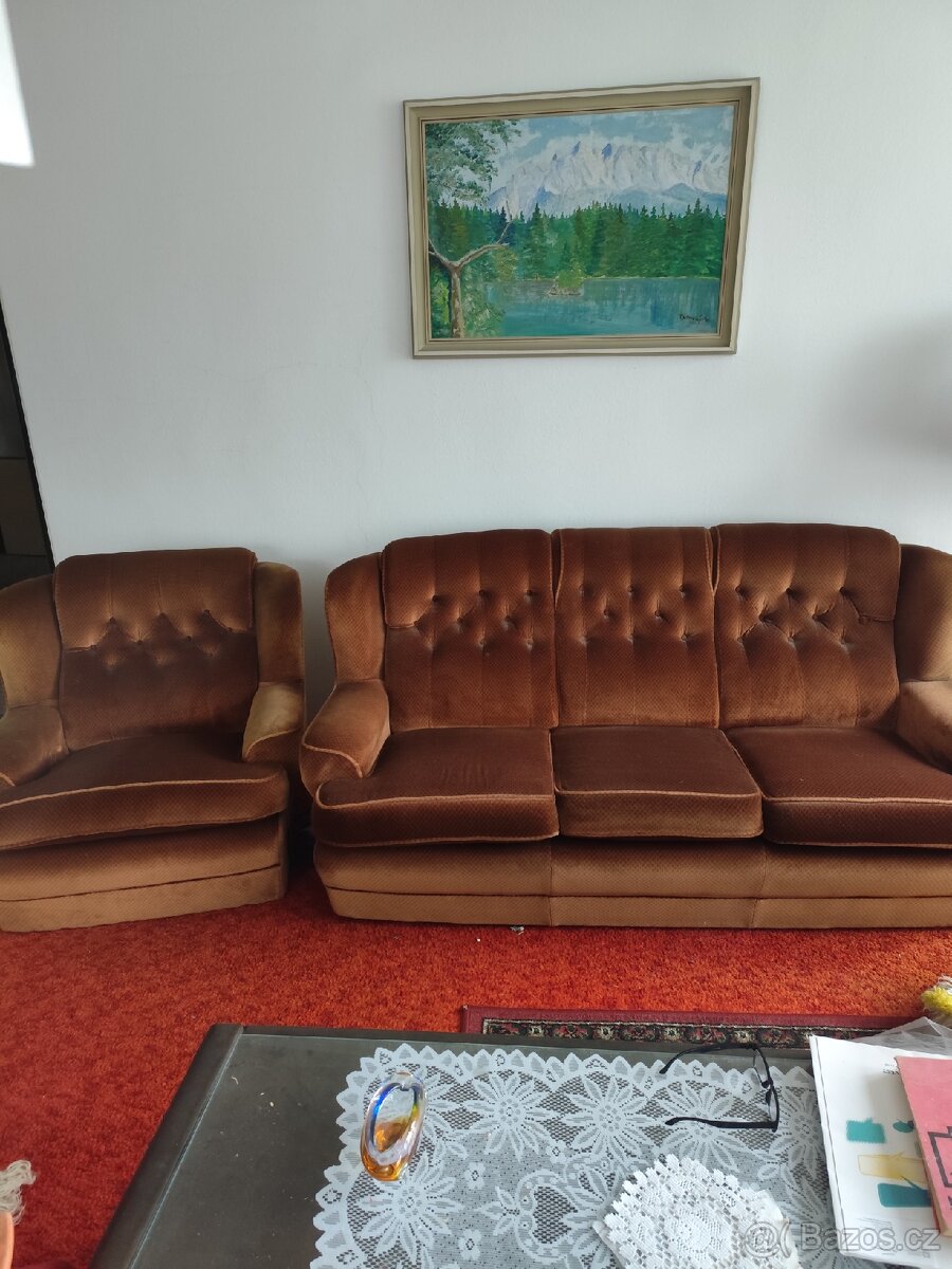 Sedací souprava a 2 křesla, málo používaná. Osobní odběr.