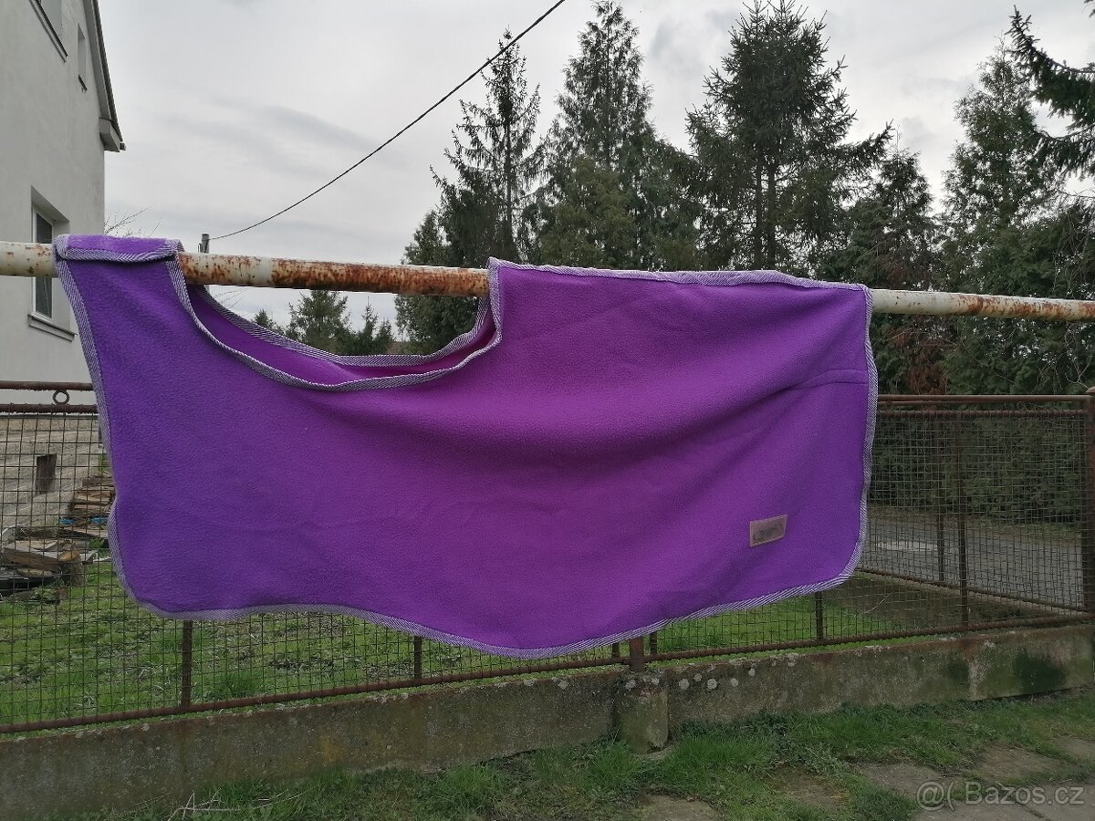 Prodám Qhp fleesovou bederní deku vel.M, vypraná, zůstalo jen pár chloupků, nezničená. Používáno na koníka co nosí deky vel. 135-140cm
