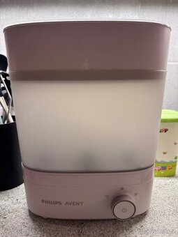 Cena: Dohodou. V záruce do 3/2028 (zašlu emailem) pravidelně čištěný -Sterilizuje párou (zabije až 99,9 % škodlivých mikrobů bez chemikálií, jen párou!) -Suší lahve i doplňky – po sterilizaci fouká filtrovaný vzduch, takže jsou věci suché a připravené k použití. -Sterilní 24 h, pokud necháš zařízení uzavřené, obsah zůstane sterilní až 24 hodin. -Rychlost a pohodlí, celý cyklus trvá cca 40 minut-sterilizace i sušení během jedné fáze. -Snadné čištění dá se rychle umýt i zespodu (včetně topné desky). -Pojme až 6 lahví najednou , dáš sem i dudlíky, savičky a jiné příslušenství. odkapávací podnos, chrání topnou desku před mléčnými kapkami a snižuje zápach. Na ceně se ráda domluvím ☺️