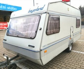 Rok výroby 1989, hmotnost 670kg, maximální přípustná hmotnost 900kg. Celková délka včetně oje 555cm. Suchý, nezateklý, nekuřácký. - elektrika komplet funkční - 12/220 V - Lednice - plyn, 12/220 V - Topení funkční - voda funkční - rozměr velkého lůžka 197 X 150, malé lůžko vzadu 180x95 - Příští STK 4/2027 - Nové pneu (zesílené)