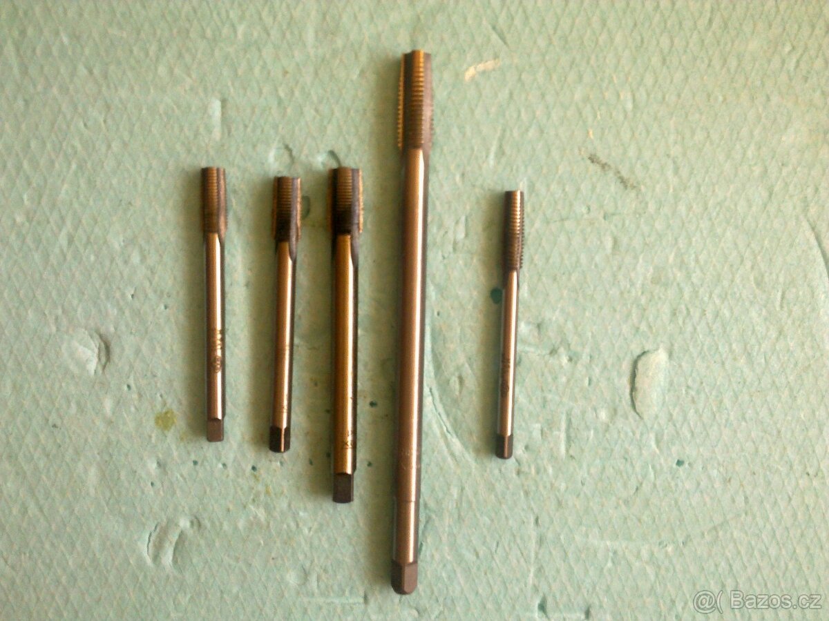 Cena: V textu. Prodám nepoužité závitníky M9x1 MAS- 100,- M10x1 NAREX - 100,- M12x1 NAREX - 100,- M12x1,5 prodloužený USSR - 100,- M8L MAS - 100,- Prodám nepoužité závitníky M6 MAS - 100,- M10 NAREX - 100,- M12 NAREX - 100,- M14 MAS - 150,- M16 NAREX - 150,- Prodám nepoužitá závitová očka M14 - 100,- P13,5 - 100 Nepoužité, sadové závitníky M20x1,5 - 300,- M16x1,5 - 200,- Prodám nepoužité čelisti Narex do instal. závitnice, viz. obr. 4-5 1/2" - 3/4" 1N Cena 400,- za 1 sadu. Prodám nepoužité čelisti Narex do instal. závitnice, viz. obr. 6-7 1/2" - 3/4" 2N 1" - 1 1/4" 2N Cena 400,- za sadu čtyř kusů Prodám závitový kalibr M10 Sh8 Cena 100,- Prodám spárové měrky - špionky, viz. foto. Cena 100,-